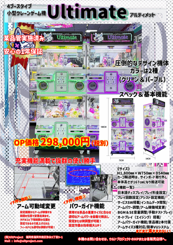高インカムが出せる4ブース型クレーンゲーム機機「Ultimate」好評発売中!